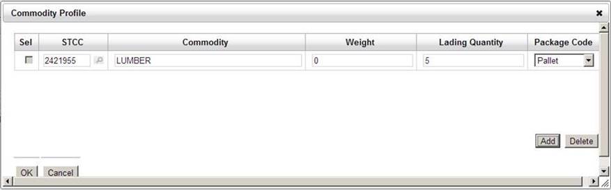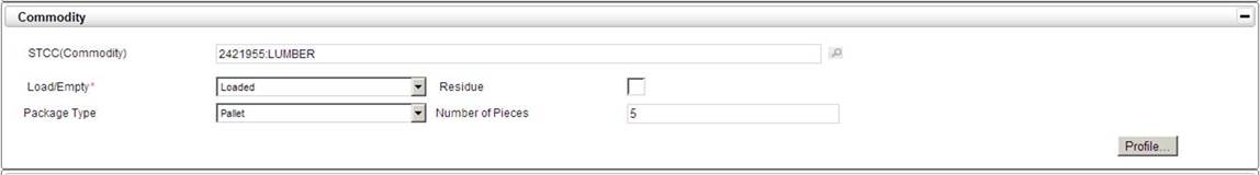 The Commodity Profile Panel is where shippers can enter additional STTC information for multi commodity shipments.