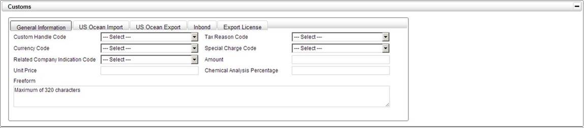 While entering data to the Bill of Lading screen, you will have the ability to expand or collapse each panel for simpler navigation. This can be done by clicking on the plus (+) or minus (-) icon at the right end of the panel heading.