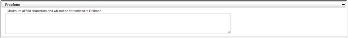 The Freeform Panel is used to allow additional information of a shipment that is not pertinent to the movement of the railcar. This information is not transmitted to BNSF but will show on the printed copy of the waybill.