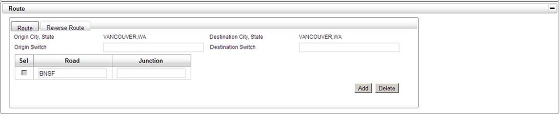 This section is for entering information specific to the route and reverse route.