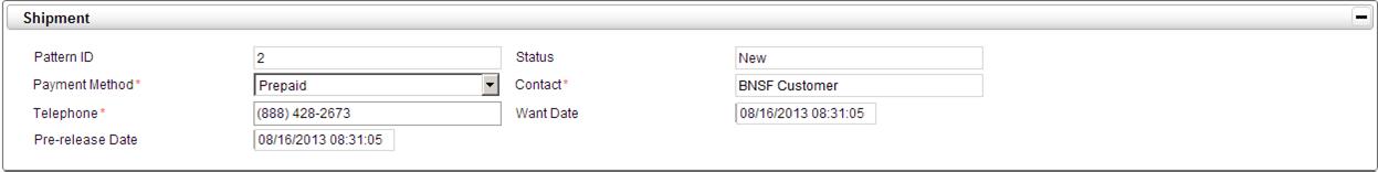 This panel is for entering basic shipment information.
