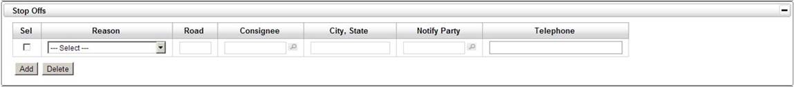 Shipments that will need to stop along the route can list the stop information in Stop Offs.